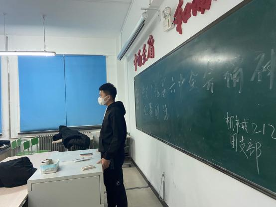 活动开始,张一帆向同学们总结了“十九届六中全会会议精神”,他说:现在我国正处在“两个一百年”奋斗目标的历史交汇点上,百年征程波澜壮阔,百年奋斗成就辉煌。十九届六中全会面总结了党的百年奋斗重大成就和历史经验。当代青年要在党的百年奋斗成就中增强自信,从党的历史经验中汲取智慧。当代青年必须不断夯实政治认同基础,自觉坚持中国共产党的领导。当代青年应该用奋斗致敬党的百年历史,以实干开创未来。