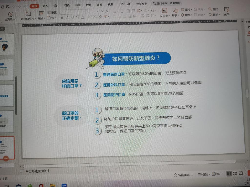 本周我小组选择在线上展开疫情防控知识讲解,将会议码转发至朋友圈,邀请各行业人士参加会议,并到社区进行宣传,邀请参加会议。本次会议由组长杨玉宝进行主持,每位组员都精心制作了防疫知识的PPT,并用心讲解。会议开始,组长杨玉宝向大家讲解了此次会议的内容及并感谢大家的参加,然后首先讲解了什么是新型肺炎,如何防治新型肺炎;然后组员樊庆龙制作文档讲解了疫情期间应如何做并进行拍照记录;组员翟晗爽制作PPT向大家讲解疫情的同时,也为大家讲述了抗疫一线的感人故事;组员马秋杰在讲述PPT的同时还制作了精美的防控知识视频,供大家观看。全组成员讲解完毕,会议进行最后总结并感谢所有参会人员的收听。