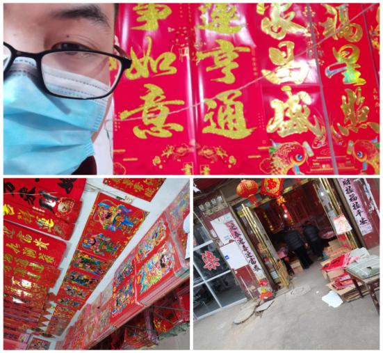 首先,我们小组商量卖啥,在寒假期间,特别是临近年关,春联百货肯定是特别需要的,所以,小组成员一致决定去卖春联。从1月7号开始,我们对场地进行考察,卖对联的摊位必须要好,人流量要大,否则就没有太多的人来光顾,因此,我们决定给摊位设置在离商场有一段距离的位置上,接着就是到本地的批发市场看看对联怎样卖,老板跟我们讲,像大门这样的的一副好一点的在八九块一副的,一般的话是五六块钱一副的,门画的话就便宜了,几毛钱一张,老板怕我们分不清门画怎样分,就高诉我们,拿大刀的是贴大门的,其他的就没啥了。