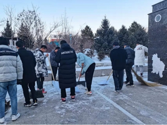 本次活动尽管天气十分寒冷,但同学们依旧如约而至,分工明确,有除雪的也有扫雪的,由于天气寒冷同学们选择轮流清雪,尽管如此同学们手还是被冻得通红,但同学们依旧坚持到了最后,最后在同学们齐心协力下,地面上雪被清理干净,地面恢复了原来的样子。
