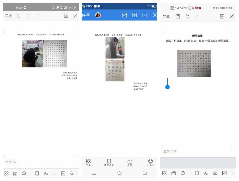 在2021年1月28日,我们机电工程系第四学期公益活动小组GY122,在队长孙洪涛的带领下,小组成员郭凯,刘敬岩,罗海琦一起进行了线上第三周的实习,进行硬笔临摹。