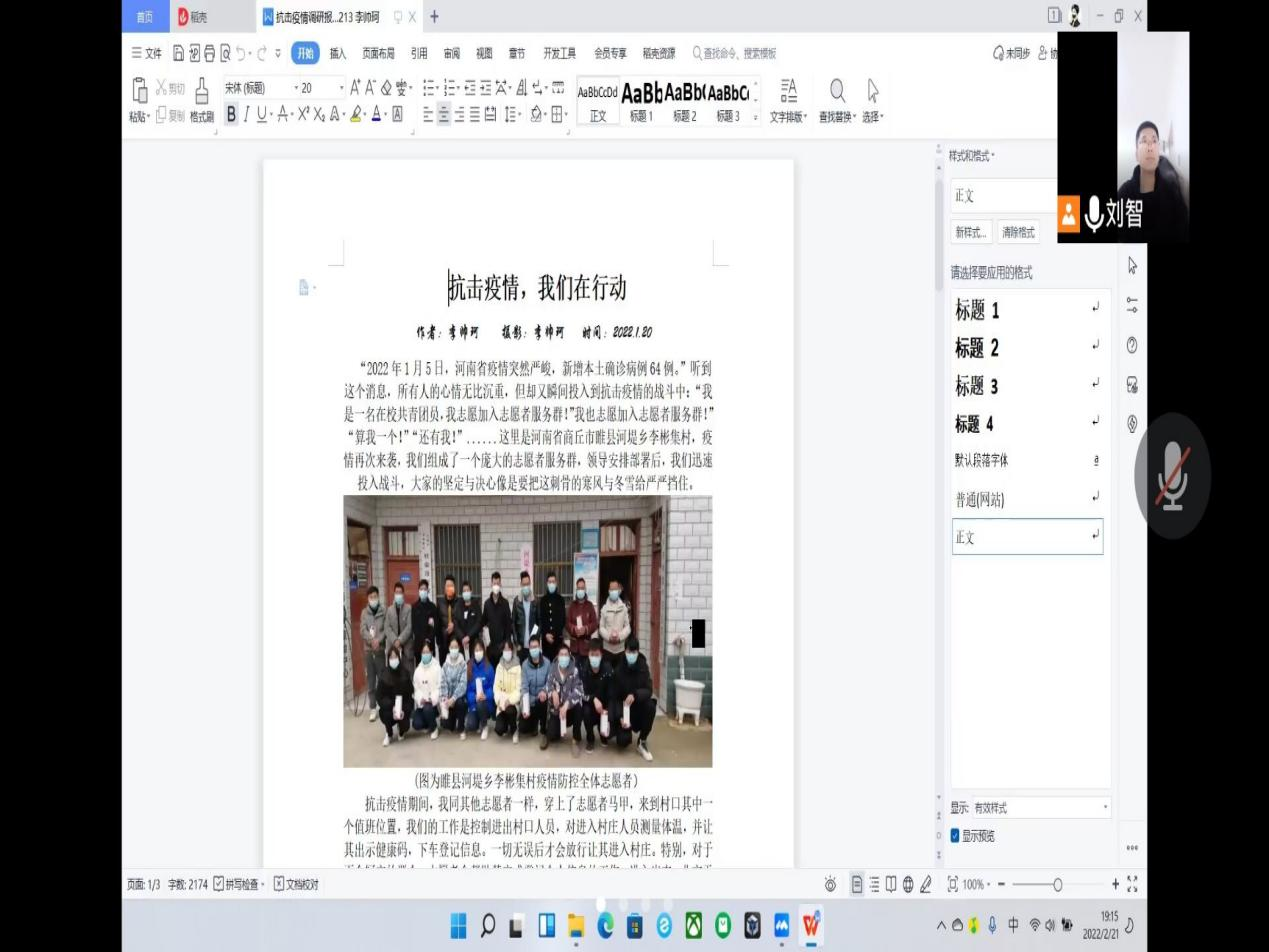 2月21日晚,为培养学生的核心素养,使学生了解社会、培养社会道德,丰富学生的社会阅历,提高专业服务能力;结合我校办学特色,使学生掌握“三五能力”而设立的第四学期即将结束,刘智老师召开了第四学期阶段总结会议,要求各小组汇报自己的任务完成情况。