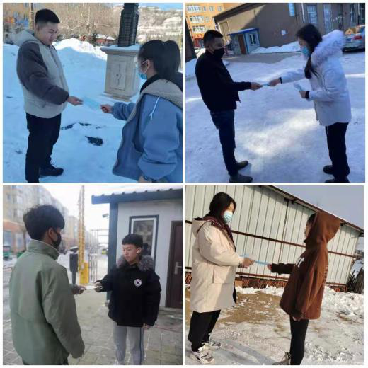 据小组调查报告显示,牡丹江周边地区疫情得到控制后,有部分居民外出防疫意识减弱。2月1日至3日期间,在组长滕雨冉的带领下,GY-313小组成员滕雨冉、齐奇、刘守文、何欣彤四人在各自社区进行疫情防控安全知识推广和口罩发放。