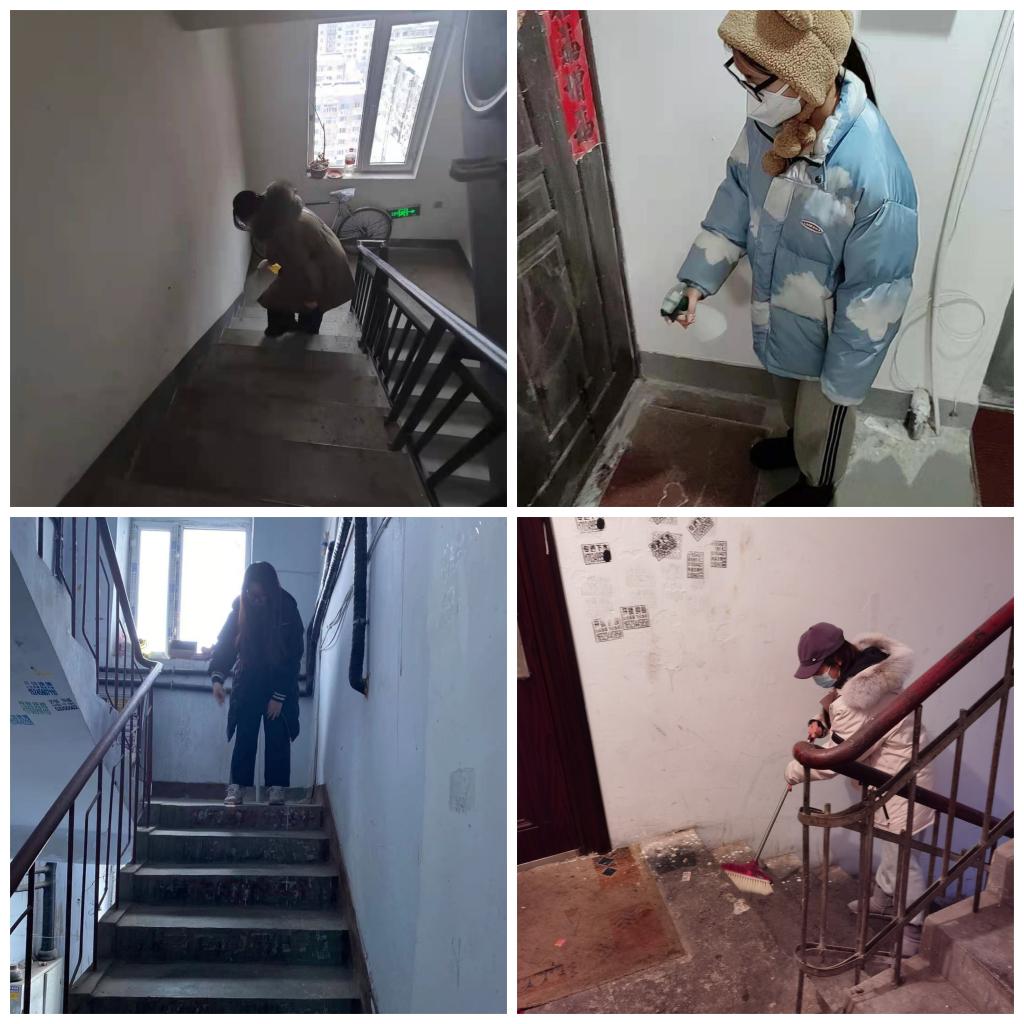 活动开始前,社区工作人员分配给志愿者工作要求及以“迎难而上,冲锋在前,与疫情决战”的主要思想。我们作为当代青年大学生,面对严峻的疫情,在保护好自己的条件下,积极参与到防控疫情的社区活动中。我们每个人都有自己分配的任务,给楼道清扫垃圾,把社区居民的日常生活垃圾扔到规定的地方。还有将楼道内的墙壁上小广告等不文明张贴物铲除,一些粘贴牢固不易清理的小广告,我们用手一点一点将其撕掉。最后我们不忘给社区楼道消毒,做一些力所能及的工作,贡献出青年大学生的一份力量。