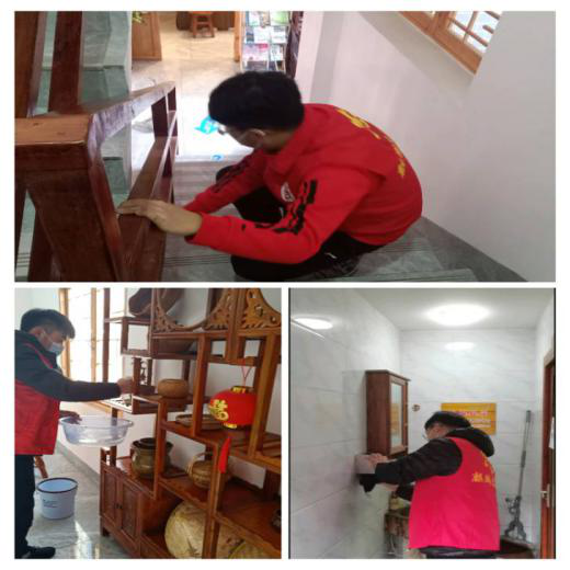 在工作人员的带领下,我们开始了对社区卫生的打扫,主要打扫了社区活动室以及楼道的走廊。钟宏健负责扫地,拖地;王泽锦和袁鹏负责擦桌子、楼梯扶手,给植物浇水等等。三层楼全部完成后已经过了一个多小时,虽然身体疲惫,但我们却很开心,看着自己的劳动成果,想到今后大家在活动室里进行下象棋等活动能有一个干净的环境就心满意足了。