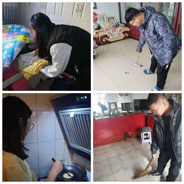 快过年了,今年,年前有一个节日叫打春,这意味着春天快到了,张境淼帮妈妈收拾屋子,把换季的春季衣服,褂子找出来,把过厚的衣服收起来,将家里收拾干净,衣服收拾整齐,洗好的衣服晾好。到了晚上,妈妈做饭时我给她打下手,共同完成了一顿丰盛的晚餐,这时我意识到,一年四季,每到换季,几乎都是妈妈在帮我们收拾,收拾好我们的衣服记得我们爱吃什么,在我们回家的时候给我们做一顿丰盛的饭菜。有多少人记得父母爱吃什么呢,有多少人会做饭,有多少人会给家长做饭。小组成员同样在家帮助父母做家务。前一段时间,我在抖音上看到一个视频,视频的内容说:爸爸没有因为钱难赚就不赚了,妈妈没有因为孩子不听话就不要了,所以我们也没有资格因为太累而不努力了。