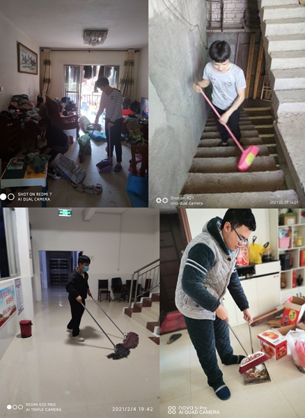 过年是迎接新一年的到来,临近过年家家户户都需要大扫除,为此借此机会,我们小组傅源林,唐梓桐,李慰源,张举阳四名成员1月31号起在家里举行感恩实践活动。