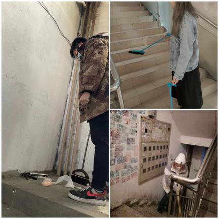 2021年02月15日,我们因疫情原因小组成员无法聚集在一起进行第四学期公益活动,所以我们放弃原来计划的一系列活动,改成社区楼道清洁工作,并取得小区相关工作人员的同意。