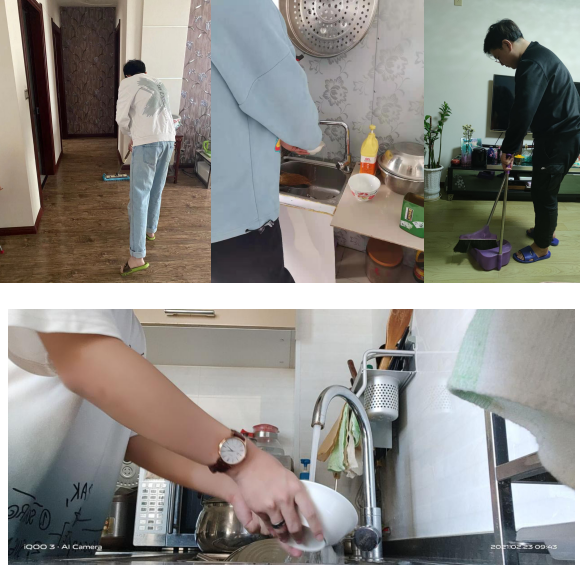为了加强自己的动手能力,提高劳动意识,我们第四学期小组成员自行组织进行为家里人做家务打扫卫生,我们一同计划方案,对周一到周五都要做什么家务进行规划于实施。组长带动组员一起进行了持续将近一个假期的家务劳动活动,大家不定期开会分享家务劳动成果,并且组长尽职尽责对每周的家务劳动活动进行总结,对大家各自都有自己的动力与鼓励,希望坚持下去。
