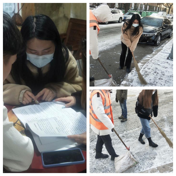 人们都说:劳动最光荣。当我在切身体验劳动时,我才更进一步地体会了这句话的精髓。2月17日,组长武旭同学把王录和王鑫同学召集到一起商量了这次的公益一活动内容:扫一下会展小区附近的街道。