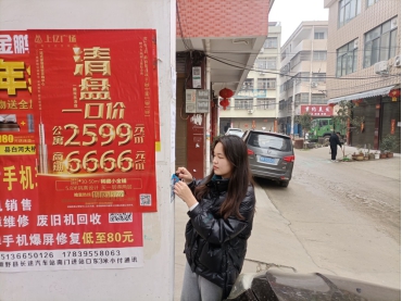 为了美化社区,给居民一个更好的生活环境,组长李文婵带领组员冯俊博和高爽锁在河南省南阳市新野县翰林院附近清理小广告。