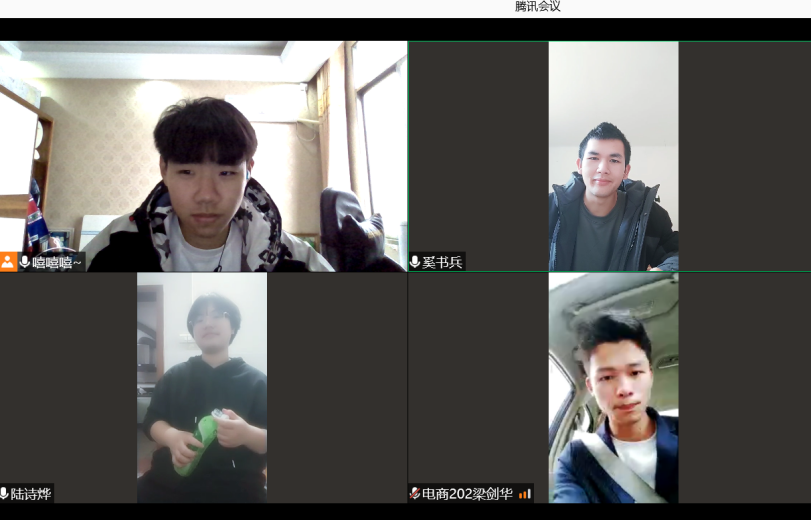 2021年2月9日早上11点30分吴许民昊、奚书兵、陆诗烨、梁剑华四人在线上开展了小组进度会议。