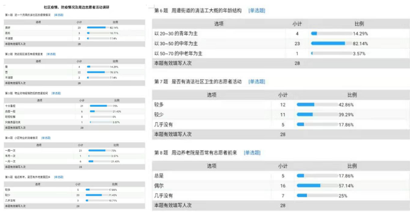 通过问卷我们也看到,疫情期间因为有社区人员的务实的工作,切断了传染源,阻断了传播途径,减少了人与人之间的接触机会。所以疫情才会好转,他们是我们身边最可爱的人。