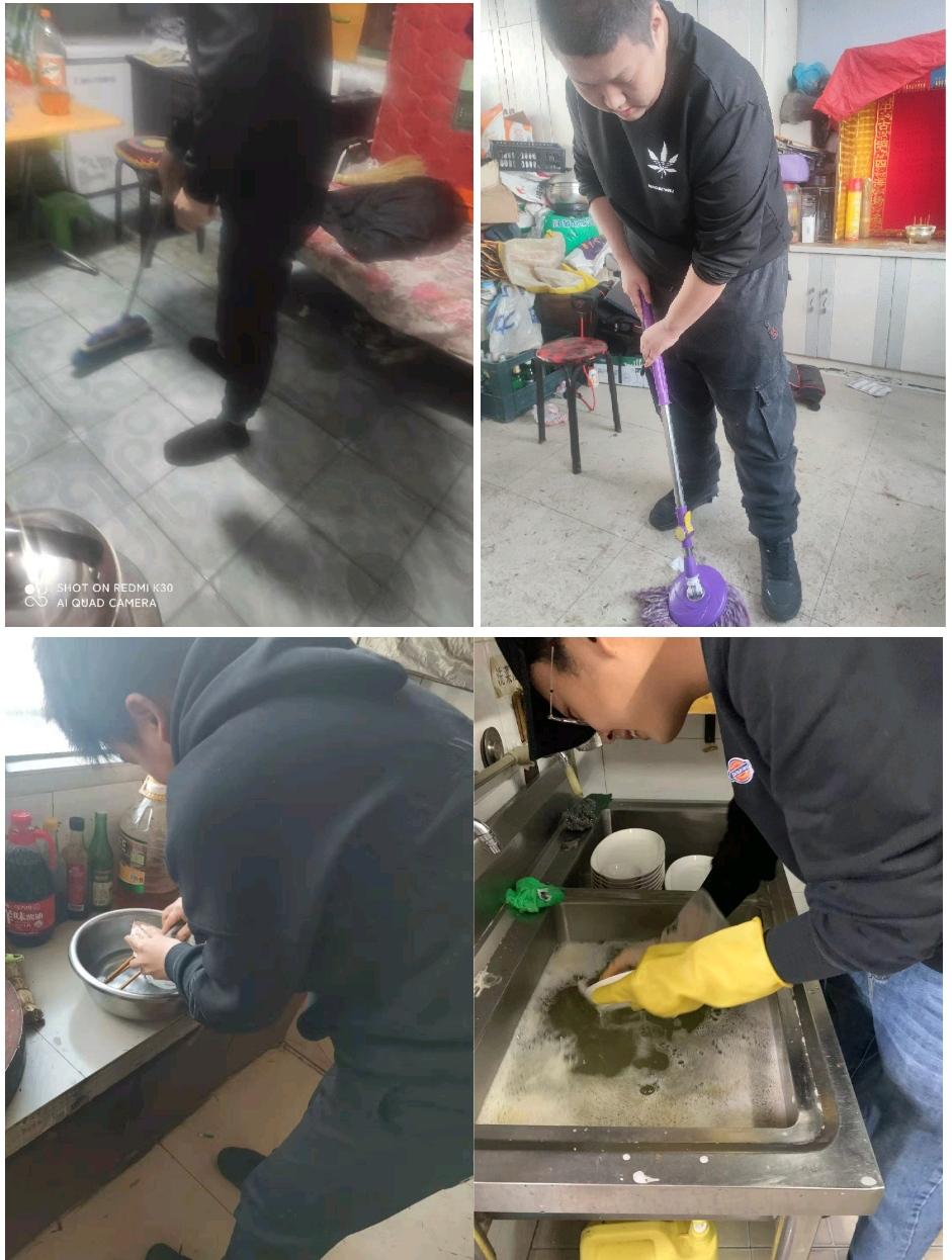 2月14日情人节,GY-172小组成员陆毅、曹泽、胡晓帅与鞠殿哲上传了每个人为父母做家务的照片,为父母擦地扫地、刷碗洗碗,做一些力所能及的事。