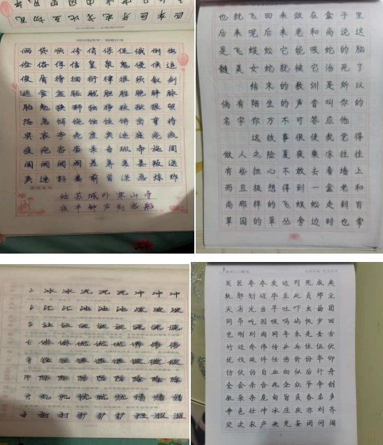 在本次活动中小组四名同学完成了30页字贴与相同字数钢楷的书写,圆满完成了第四学期任务。