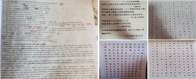 为丰富疫情常态化下的居家生活,增强学习能力,提高汉字书写能力,外语运用能力。GY-306小组成员王宁、关振泓、翟晟小组于2021年1月31日在小组群内拍各自的字帖临摹,描红,以及做的英语四级题。