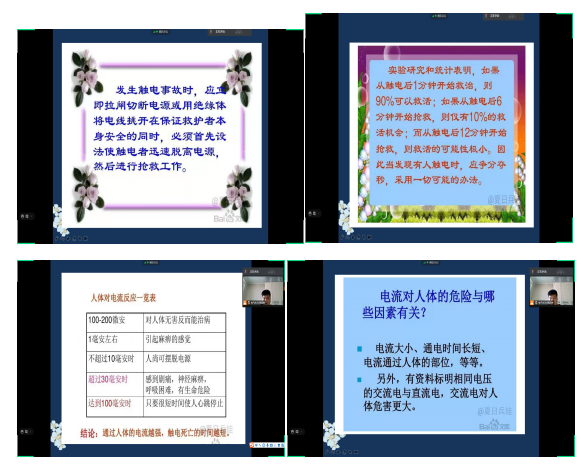 因此我们开展了此次线上社区活动。具体去讲解用电安全方面的知识。增强居民们对电的了解和对电气危险的感知。其中具体有人体对电流的反应细致讲解,电流对人体的危险与哪些因素有关,例如电流大小通电时间长短,电流通过人体的部位,交流电与直流电哪个伤害更大。更讲解了,在通电时间越短的情况下存活率越高。最后如果不幸发生触电事故,应及时切断电闸或用绝缘体将电线推开,以保证救护者本身安全的同时,必先首先设法使触电者迅速脱离电源,然后进行抢救工作。