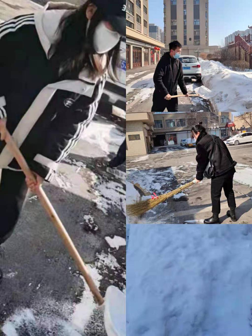 我们深知社会是一所更能锻炼人的综合性大学,只有正确的引导我们深入社会,了解社会,服务于社会,投身到社会实践中去,才能使我们发现自身的不足,为今后走出校门,踏进社会创造良好的条件;才能使我们学有所用,在实践中成才,在服务中成长,并有效的为社会服务,体现大学生的自身价值。因此,GY-325小组于2021年2月28日星期日上午8:00在盛隆国际小区进行了清雪服务,参与成员有:孙卓、赵亚楠、田超。