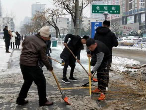我们通过联系社区工作者寻找了扫雪工具,戴好帽子口罩便加入了社区工作人员的扫雪大队中,为了不影响居民的正常出行,尽快将积雪清理干净。大家进行明确分工,一部分人员负责社区门前积雪,一部分人员负责陡坡处的积雪积冰,分工合作有条不紊。我们负责协助他们,哪里有需要就去哪里。参加劳动的人员拿着除雪工具,有锹、扫把、除雪铲等开始了除雪铲冰工作。铲雪工作足足进行了两个多小时,大家把社区居民出行的必经之路清扫的干干净净。在寒冷的气温下,大家井然有序,没有叫苦叫累,放弃休息齐心协力的打了一场漂亮的除雪仗。并且在社区花园中堆积各种各样的小雪人引来小区的人观看拍照我们用实际行动,发扬志愿服务的奉献精神,使得活动有条不案的进行。