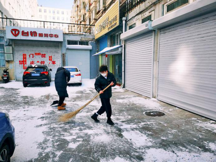 为美化家乡环境共同建设家乡,作为其中的一份子我们也参与其中。为此gy286小组成员夏禹博、董希旺、谭铭锋、李玮桐于2021年2月28日展开了帮助社区清扫的活动。由于天气寒冷路上有部分积雪为人出行带来了困难,特别是一些老年人。