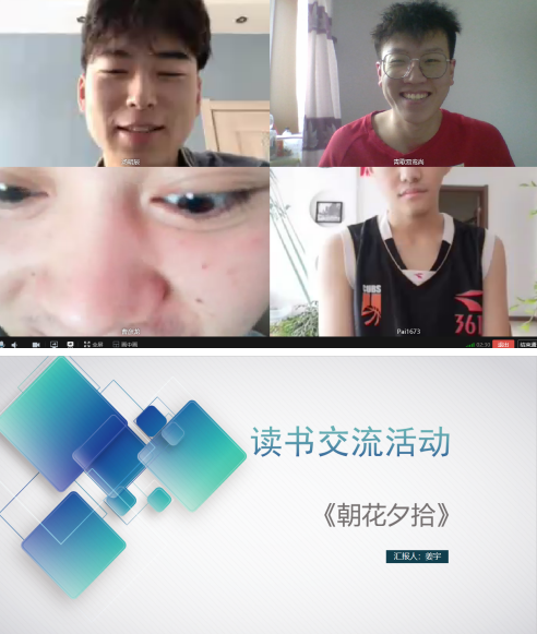 为在假期期间提高小组成员文化素养,第四学期机械本183班GY-220组组长姜宇同学在腾讯会议开展“浸书香墨韵,绘人生底色”读书交流活动,组员汤明辰、付宇、曹彦龙参加了此次交流活动。