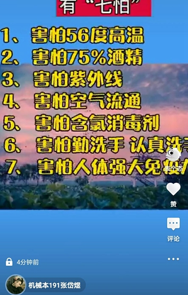 2月5日,我们组张岱煜,王新睿,马平平在网上宣传面对疫情该如何防护。我们还在抖音APP制作并发表相关视频,希望有更多的人能看到。