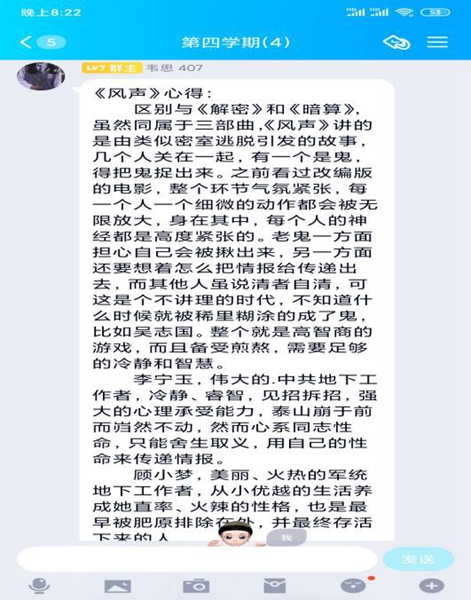 本次读书交流我们组员都积极的参与,而且也十分的认真去读好的书籍,这个是值得赞扬的他们也都读完一本书后的感受积极的分享了他们的读后感。