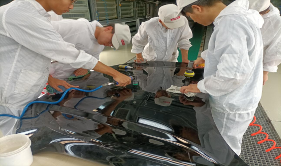 在来到长城的第一天,培训老师告诉我们的第一件事就是安全的问题,并且给我们举了很多不注重安全以至于受伤的例子。随后,我们又学习了很多关于工厂的注意事项。我所在的岗位是检查精修的平面检磨,它是由对车辆顶部、A柱以及车辆后侧面的检验,发现问题后的处理方法是:对车辆问题的研磨,研磨后再进行抛光。它处于最后一道检验工序,是一个非常重要的一个岗位,也是考验一个人的认真程度的岗位。通过了为期15天的技能培训,从刚开始的只能在旁边看着,到简单的帮助师傅验车,再到帮助师傅对车进行研磨和抛光,以及最后的独立完成工作。在这段时间里,也发生过很多的问题,比如:对车顶一些问题的检查不仔细,对问题部位的研磨不充分,对研磨印记的抛光不良等,这些在工作中都是很致命的问题。经过一番努力,功夫不负有心人,在培训的最后几天我终于克服了所有的问题,并通过了班长的检测。