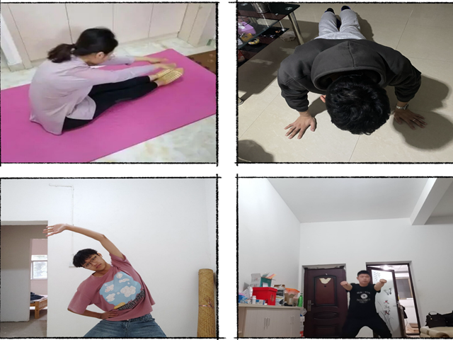 适当的体育锻炼可以很好的改善心理和生理状况,增强身体的柔韧性,增加血液循环,展身心,帮助睡眠,增强强自信心,保持良好的心态。JDCL20-017组长张冉鑫,成员杨宇博、毕荣、邹穗凤于2022年1月17日开展了居家锻炼活动。