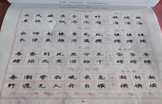 通过第四学期的每日练一页字帖活动,使我们每个人的汉字书写能力都有了显著的提升。一本好的字帖就相当于随身的书法老师一样。我们可以时刻从它那里学到一笔一划该如何运笔,一间一架该如何掌握。写字是一件情趣高雅的事,通过练习写字,博览名贴,可以开阔眼界,增长知识。通过练习写字,可以让人学会谦逊。