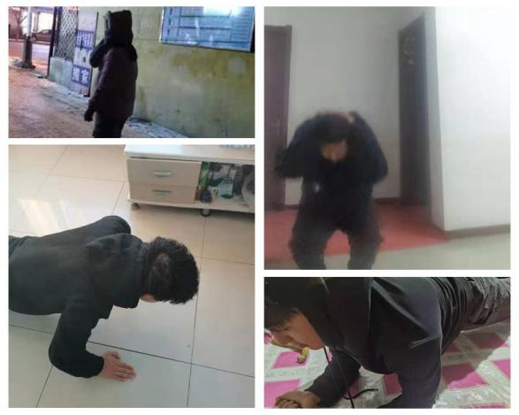 我们居家锻炼的方式各不相同。曹泽同学选择了平板支撑、齐云霄同学选择了俯卧撑、陆毅同学选择了深蹲、白鸿同学却选择在居民区楼下散步,虽然方式各不相同,但意义都是很大的。