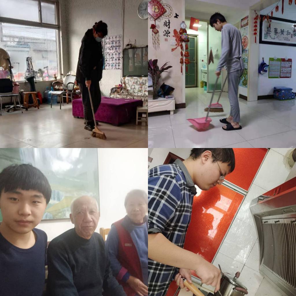 在1月12日的感恩实践中,李庆霖同学去看望家中长辈,用自己的奖学金为长辈购买礼品;樊锐同学为父母做饭,用自己的手艺为父母送上香喷喷的饭菜;李长甜同学与邓文吉同学积极帮助父母打扫家中卫生,保证了家中环境的清洁。在1月19日的感恩实践中,李庆霖同学与樊锐同学为父母做饭;李长甜同学与邓文吉同学积极帮助父母打扫家中卫生。