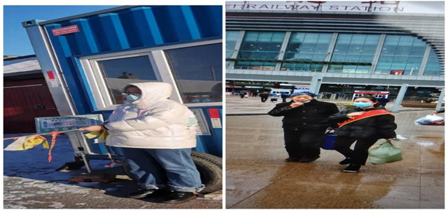 JDCL19-017组内郭云云,李晓慧分别在高铁站,小区疫情防控点进行志愿服务,此时正值返乡高峰期,郭云云在高铁站为返乡农民工解决困难,做问路指引。在返乡期间,会有很多问题出现,尤其遇到小孩走失、丢失东西也是负责的主要事情。除此之外小区进出入的人流量会增大,李晓慧主要负责的就是在小区门口为进出人员测量体温,查看健康码,登记外来人员。虽然现在是疫情特殊时期,但只要我们人人献出一点爱,帮医护工作人员和返乡人员在特殊时期提供一点帮助,就能帮国家一个小忙,一起走过难关。