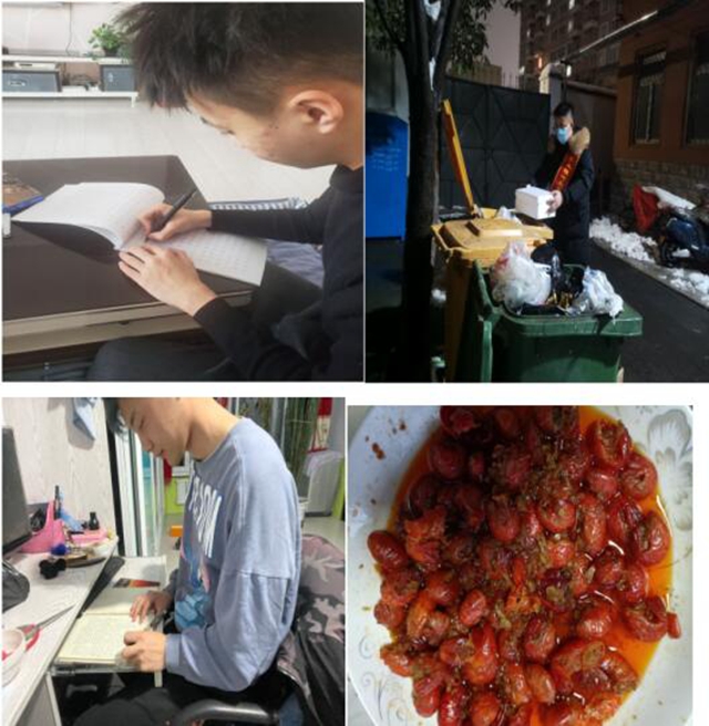 我组成员周佳伟、崔洋赫在居家活动中,每天书写一篇字帖,并上传到腾讯文档上交老师。其次,张源思同学为自己的家人做了一份蒜蓉小龙虾,虽然外观不是很好看,但是味道还是很棒的。王家悦同学参加了家乡志愿者活动,进行垃圾分类管理分拣志愿者,按照社区团组织安排每天对社区垃圾进行分类分拣。