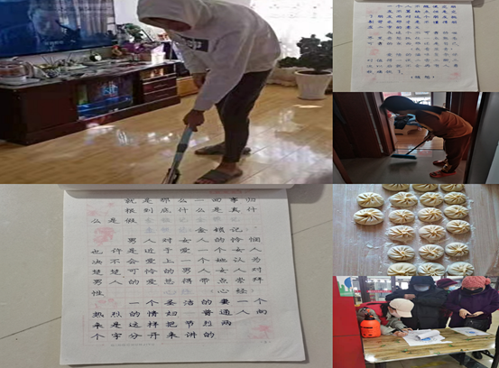 首先在寒假来临之际我们就已经做好了规划,在这个假期内,虽然我们也存在了浪费时间的问题。但是我们认为我们自己还是有很多的收获的。在假期中,我们分别读完了四本书《苏东坡传》《小妇人》《幸福是灵魂的香味》和《撒哈拉沙漠的故事》。我们也会通过线上一起讨论书里的内容,在增加了我们的知识的同时还引起了我们的一些思考。基本达到了我们预想的目的。此外,长时间呆在家里身体长期处于安静状态、基础代谢率低。对身体健康是很不利的。而且长期居住在封闭的家中,容易产生烦闷、焦虑、烦躁等不良情绪,对心理健康也非常不利。减少外出不能减少运动,我们充分利用家中空间和实际情况、选择了适合自身的健身项目和方法,去提高健康水平。居家进行体育活动的方法非常多,我们通过手机的应用市场上和网络上有大量的健身APP进行锻炼。不仅如此,在闲暇之时我们也是每天抽出时间进行汉字书写,在临摹的海洋中,我们尝到了汗水背后的快乐,只要耐心的去写,就会写出一手好字,一笔一画地写享受汉字的乐趣。平日里我们也会进行社会实践活动,疫情期间主动申请参加志愿服务活动,帮助一些场所进行扫码测温,下雪天的时候主动帮助社区清除积雪。