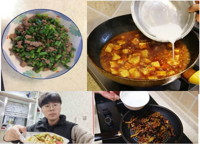 2022年2月12日电气201班付科翔、娄士俊、狄定宇、龚俊超4人进行第二次感恩实践活动。每人为家里炒了一道菜。