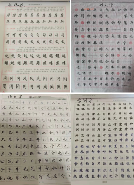 在第四学期本周,本组成员仍然积极认真完成着本周的任务活动,一刻也不松懈。由于疫情的蔓延,在家学习显得尤为重要,但是本组成员秉持着自律的态度认真临摹着字帖,以端正自己的书写态度,提高书写能力。都说字如其人,做人做好就得提前能够写一手漂亮的汉字。练字不是为了写完那版字,而是在写这个字的过程中,将这个字的笔画分解了,一笔一划,慢慢的下笔,感受这个字的美感。