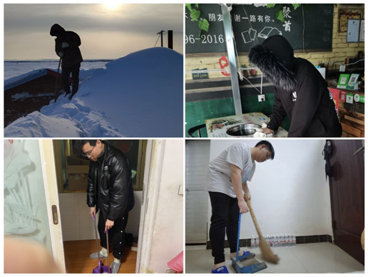 母爱似水一般柔和,温和而细腻;父爱如山一般雄伟,深沉而伟大。我们从小就在父母的臂弯下长大,如今,我们已经长成二十多岁的大小伙子了,放假期间在家里帮家长分担一下家务是最基础的回报。 汽服201王卓回到乡下,为了防止过厚的积雪把房梁压塌,帮忙清理房顶上的积雪;汽服201朱怀明帮忙打扫店里的桌子在客户走后将桌子整理的干干净净;汽服201秦国鑫与兰云羿在家里帮忙扫地,经过一个多小时的时间将家里整理的更加整洁。在做家务的过程中,有欢笑,有嗔怪,有我们对家长的爱与感恩的心。