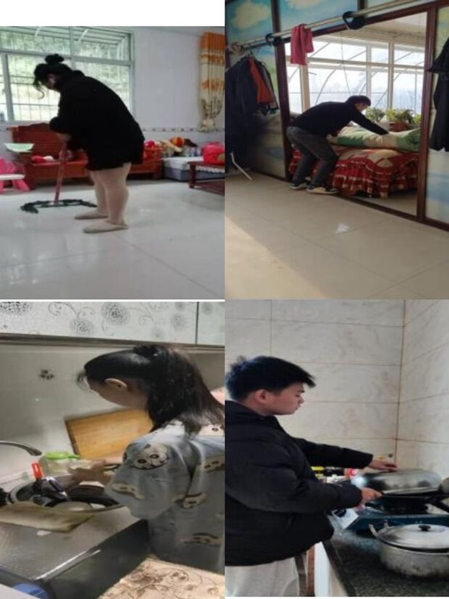 韦欣儒同学帮父母做了一顿饭,孙广同学帮父母收拾被褥,李事涵帮父母洗刷碗筷,张文文同学帮父母做家务。平日里看起来很轻松的一件事,再我们手里却没那么轻松,让我们更能体会父母几十年如一日对我们照顾的不易!现在长大了,更应该帮父母做一些力所能及的小事,想要的其实很少,只是一份孝心而已。