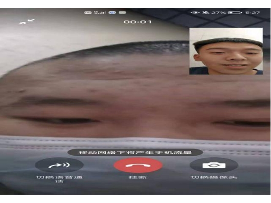 2022年2月24日 JDDQ-21-009组胡金懿进行线上母校回访,因疫情原因以线上视频通话的形式探望老师。