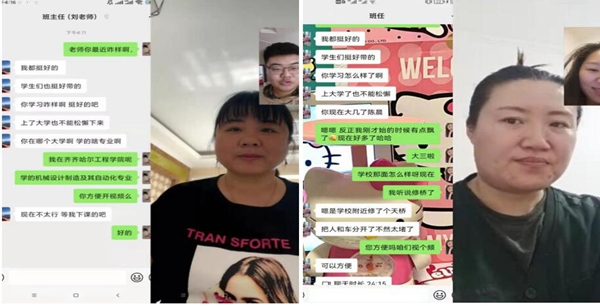 由于疫情原因,各学校都有管控,回访只能在线上进行。对此小组成员车裕通表示,即使实在线上,隔着屏幕,但依然能感受到老师看自己时的喜悦。其他成员也说:“视频时,老师对我说她感到非常欣慰,自己教过的学生都有出息了!”。