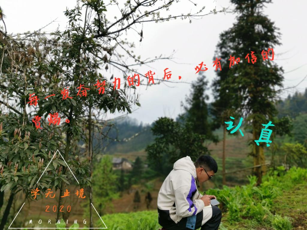 机械本181班周德容,身在四川山区,家中没有网络只能到山下的梯田上找寻信号学习,处在绿色的世界里心旷神怡,虽然学习条件艰苦,但是乐在其中。