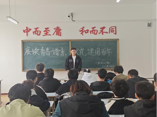 姜宇同学为同学们讲述了百年团史的重要事件,通过多媒体为同学们分享相关视频,同学们认真观看。随后姜宇同学为同学们讲解了视频中的细节,并总结道:“五四在即,青春相约,青年成团,熠熠生辉。我们应当深入学习贯彻习近平新时代中国特色社会主义思想,赓续青年团员听党话、感党恩、跟党走的红色基因,彰显青年担当,握紧奋斗之笔,谱写青春华章,筑牢理想信念,献礼建团百年。”同学们纷纷表示有所收获。