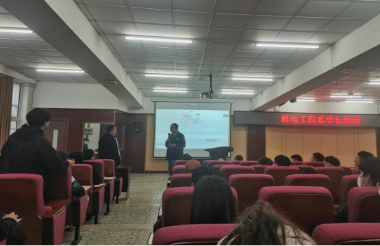 为深入开展学长培训工作,明确学长的工作与职责,机电工程系于5月5日下午17点在图书馆501如期开展第八期学长培训,白士元老师主讲,67名预选学长参加。