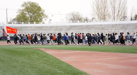 跑步开始之前,宋恩超学长带领同学们做热身运动,以免在跑步时造成肌肉拉伤。跑步对身体的好处有很多,可以增强抵抗力,愉悦心情。跑步过程中,宋恩超学长带领喊口号,同学们迈着整齐的步伐伴随着响亮的口号,在体育场挥洒着汗水,都感受到自身的成长。在最后,大家一起拍照留念,记录了新一天早上的训练。