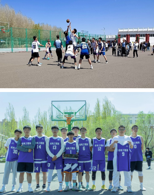 5月9日,体育节第一场篮球比赛机电工程系vs建筑工程系在篮球场顺利进行,机电工程系以34:27的比分获得首胜。