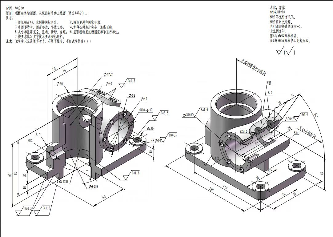 本次比赛设置投影基础与制图基础笔试题,学生根据给定题目进行尺规绘图,要求学生在规定时间内尺规作图,重点考查基本体的投影、立体表面交线、组合体构型与看图样画法知识能力。由先进成图室成员张康、柳皓然、刘继成等学长进行现场指导,机械19级李响等人监考。比赛要求,卷面试题用尺规绘制,视图绘制执行最新颁布的国家标准。本次机械制图比赛是对机械专业学生制图水平的全面检阅,比赛过后评委老师也会针对优秀的学生开展重点培养。