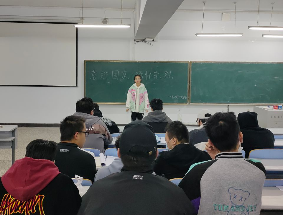 9月30日是我国的第9个烈士纪念日,为崇尚英雄的丰功伟绩、缅怀革命先烈的英雄事迹,值此国庆节之际,机械本192班于10月3日7:00开展了喜迎国庆,缅怀先烈主题团日活动,本次团活由团支书刘硕主持。