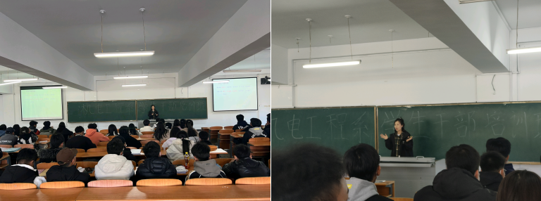 为了培养各位学生干部的能力,2022年10月10日,全体机电工程系学生骨干在图书馆101进行培训活动。辅导员老师王虹,就如何促进学生干部成长对机电系全体学生干部进行训练。