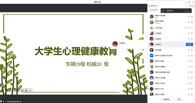 机械201班心理委员范冰晶首先从心理健康的重要性开始讲述,对于机械20级和车辆19级来说,大学生活已经逐渐走向尾声,保持良好的心态面对毕业后的生活、拥有良好的心理状态是两个年段学生们至关重要的。其次,在面对事情时拥有良好的心态也是成功的基础,遇事临危不乱才是一个合格的青年大学生应具备的优秀素质。